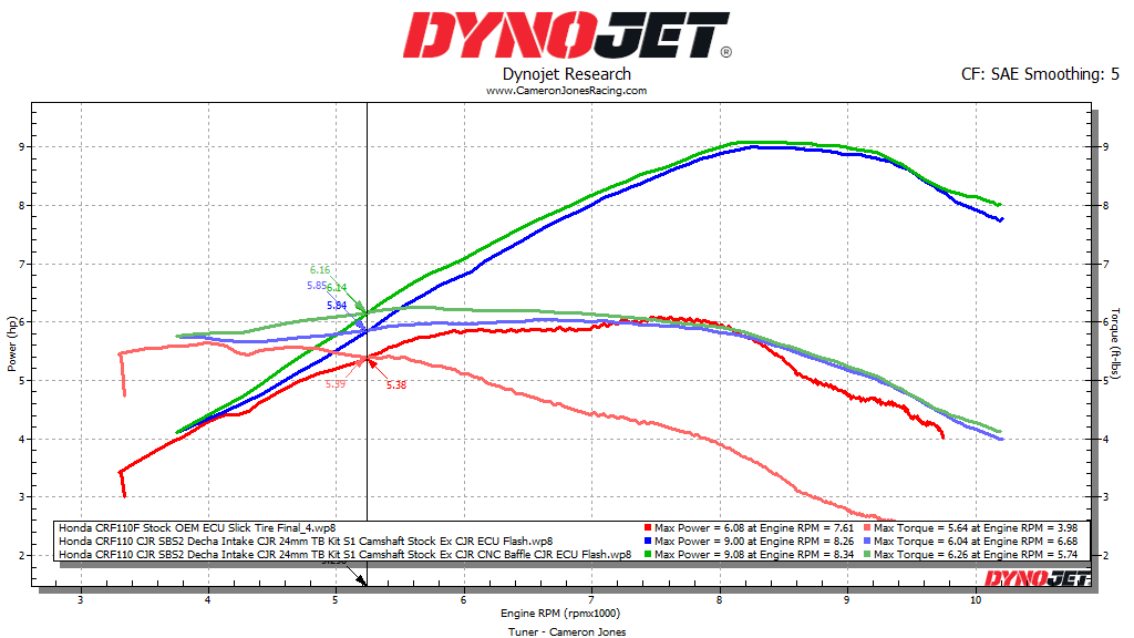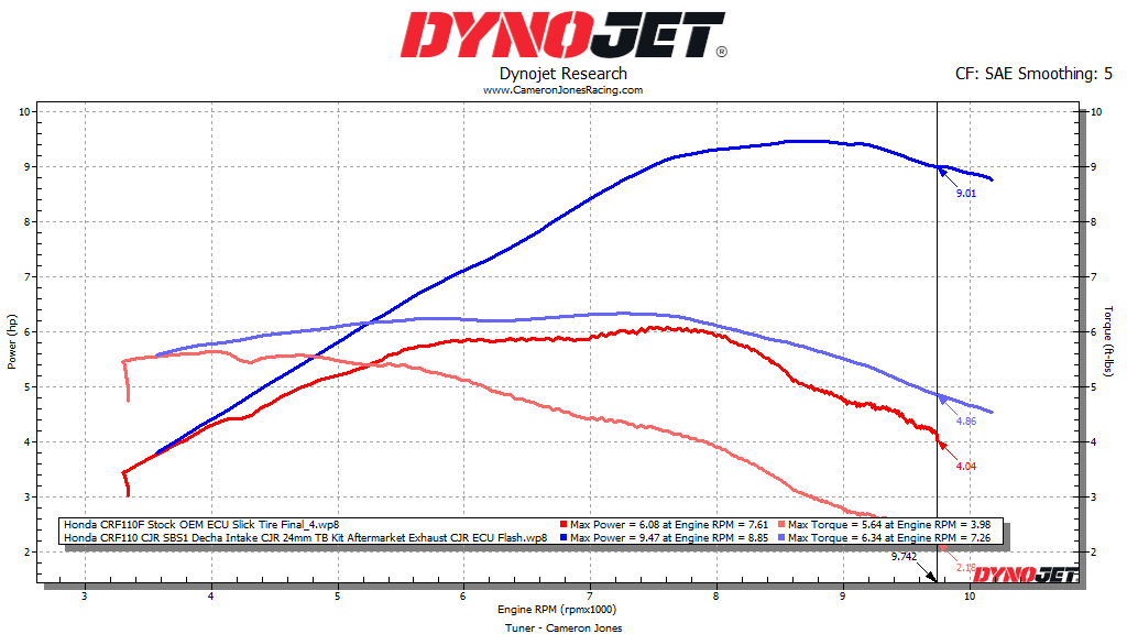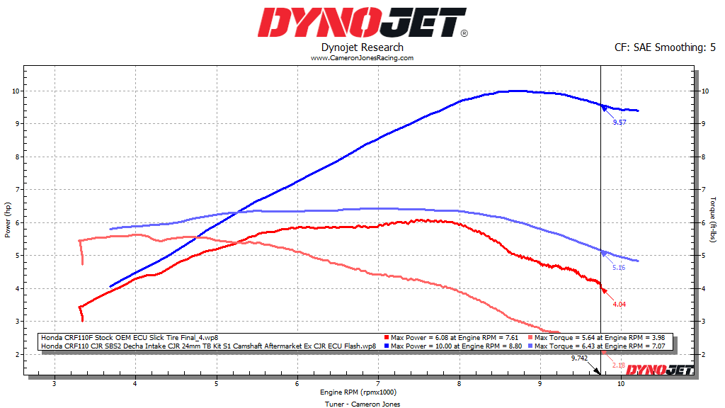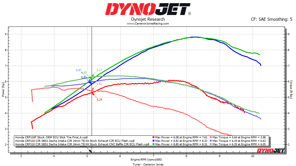 The CJR Performance ECU Flash has been created on our top of the line Dynojet 250i. Since the beginning of 2019 we have had well over 5,000 dyno runs on the CRF110’s alone which has now created over 500 different tunes to choose from!
